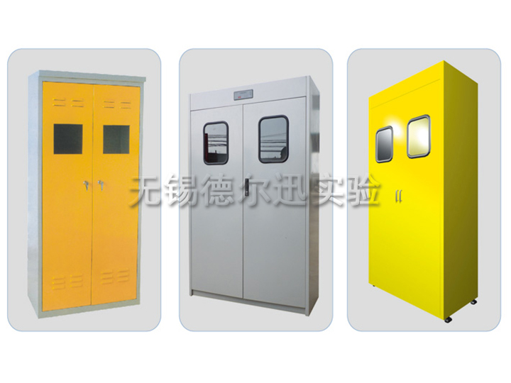 氣瓶柜用于提高局部的排氣通風,保護鋼瓶(氣瓶)不受柜子外面火災以及保護周圍物免受內部火災的金屬容器。氣瓶柜內部有吹洗系統,報警器和排氣孔,通常有一瓶位、二瓶位和三瓶位。